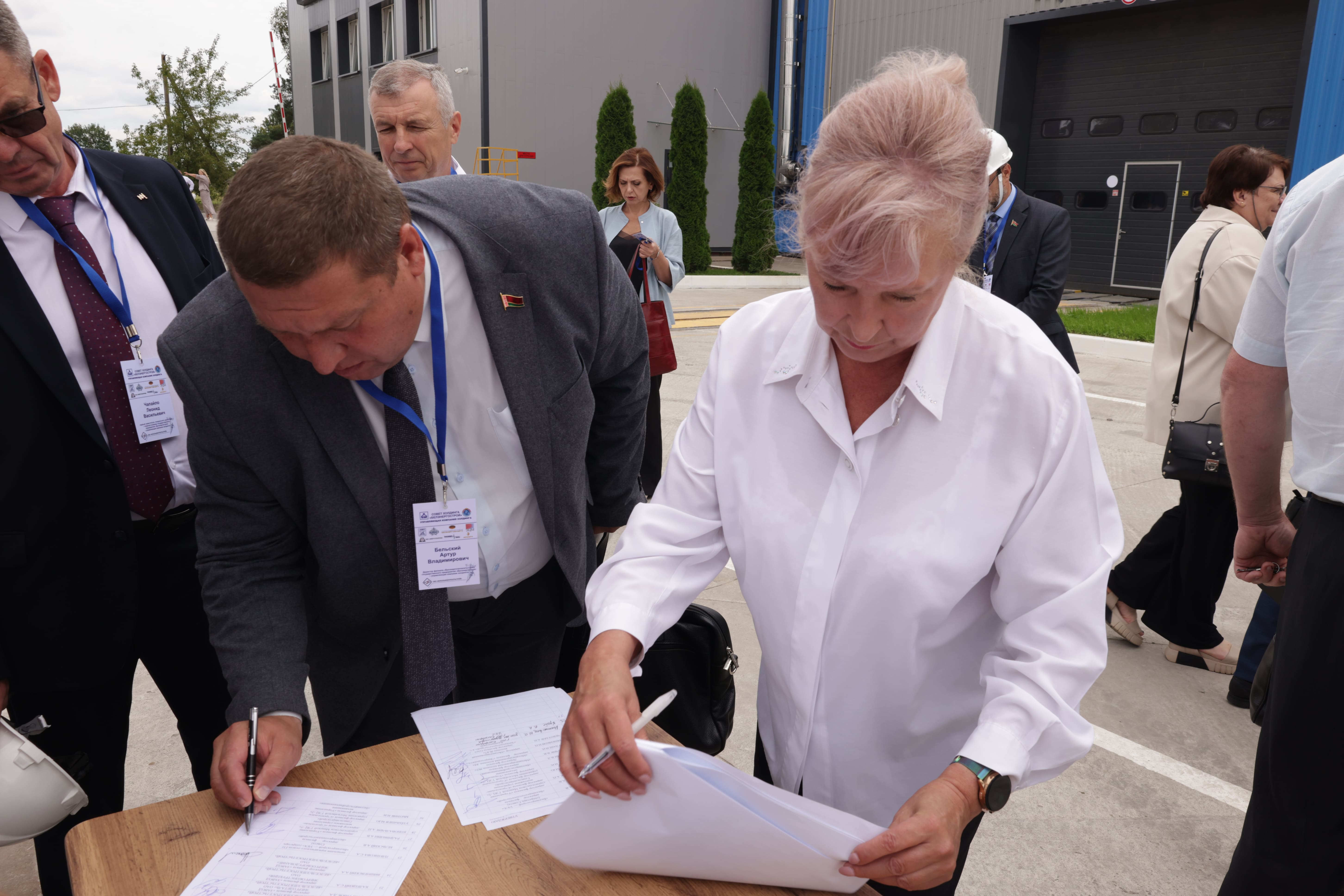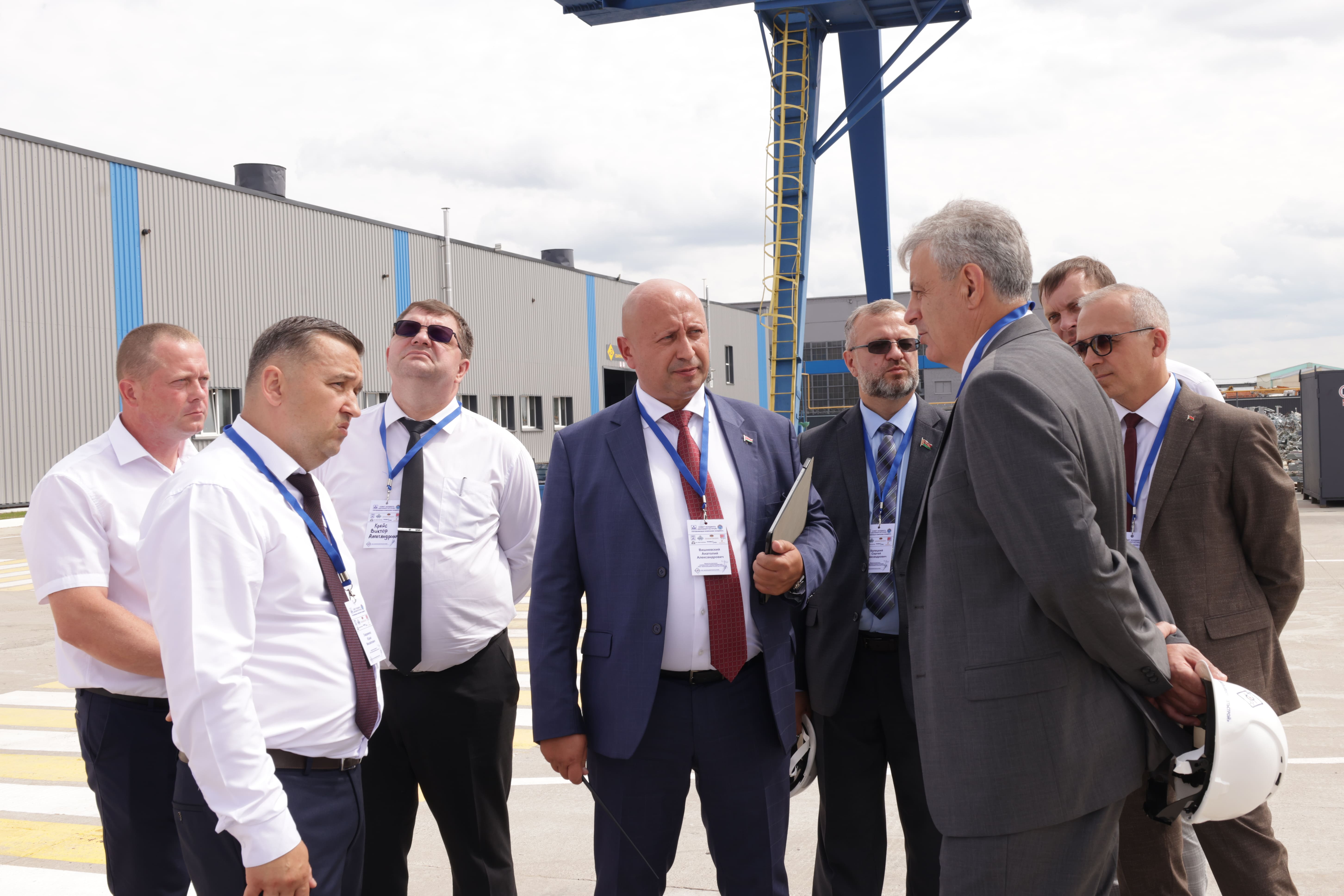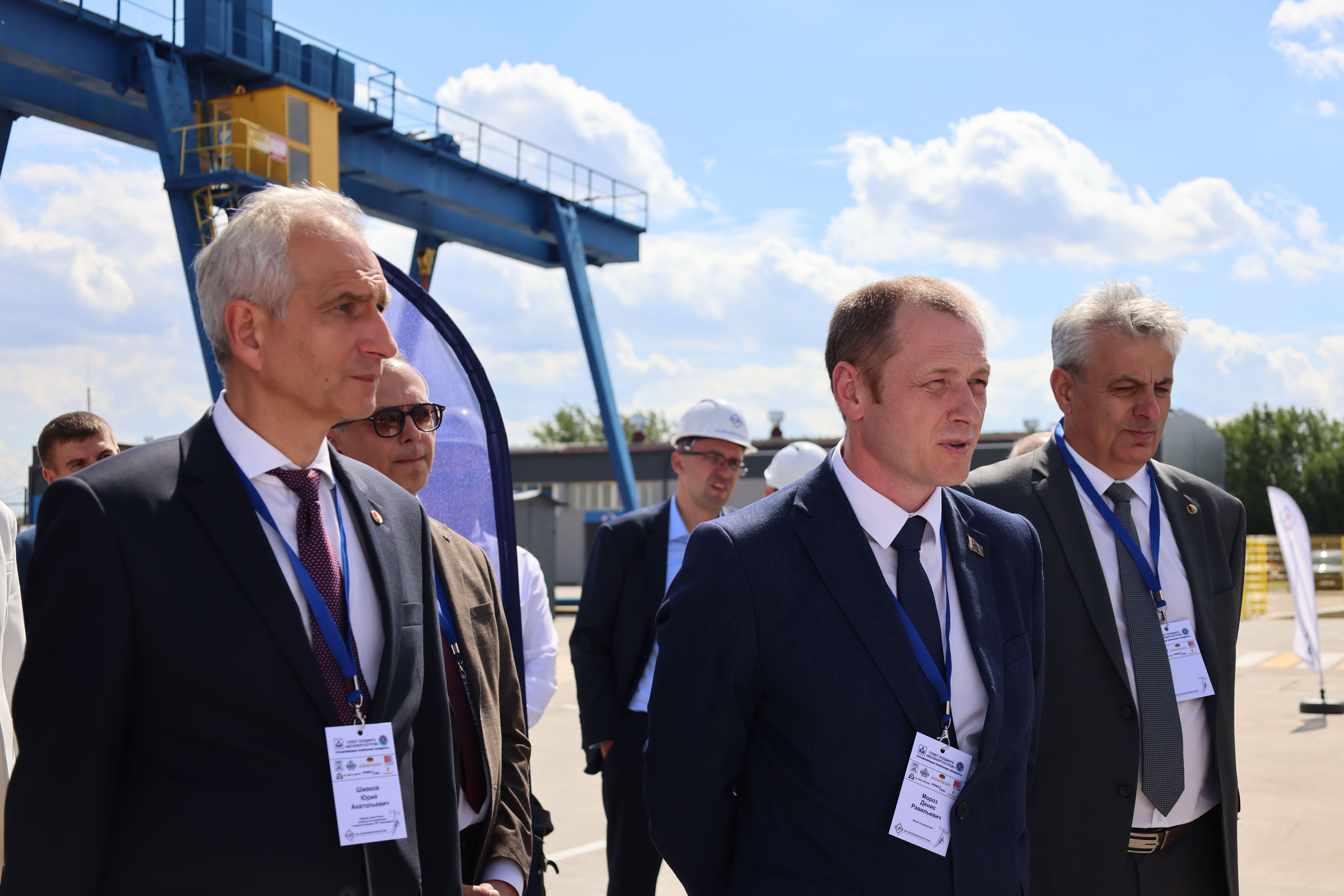 После ознакомления с производством и продукцией участники мероприятия продолжили общение в актовом зале, где со своими докладами выступили руководители дочерних организаций. Подводя итоги работы за I полугодие 2025 года генеральным директором ГП «Белэнергострой» - управляющая компания холдинга» Андреем Реутом была отмечена положительная динамика ключевых показателей эффективности работы Холдинга.
