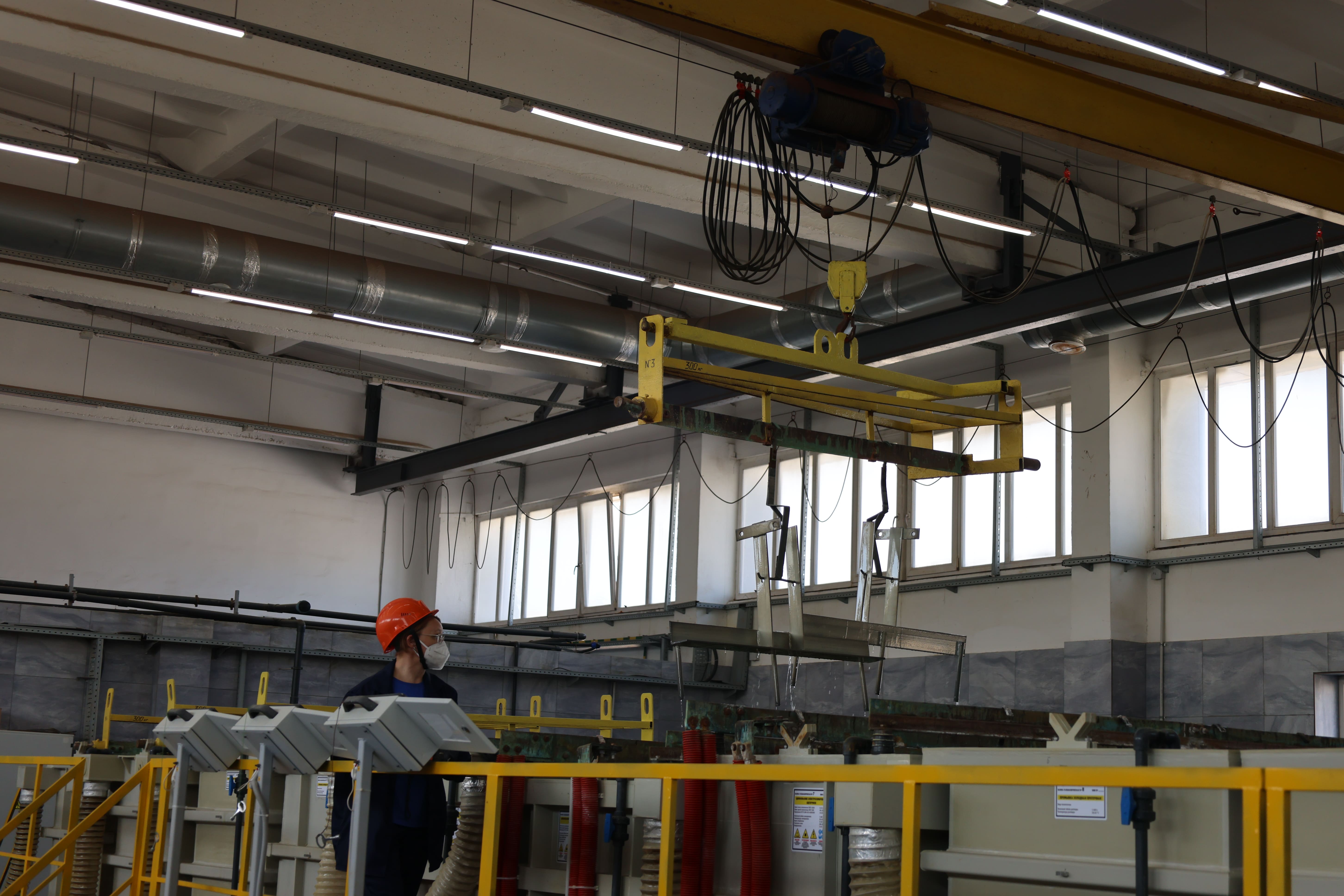 Одним из этапов экскурсии было посещение производственных участков филиала «ЗАВОД ЭНЕРГОКОНСТРУКЦИЯ». Первыми участками, куда направились участники Совета Холдинга во главе с Министром, стали участок гальваники и участок термодиффузионного цинкования. Здесь были представлены линии гальванического цинкования, а также линия термодиффузионного цинкования. Генеральным директором Общества Юрием Лавриенко было отмечено, что технологические возможности линии термодиффузионного цинкования позволяют проводить цинкование изделий, имеющих длину до 3,5 м, что является на сегодняшний день максимальной величиной обрабатываемых данным способом металлических изделий в Республике Беларусь.